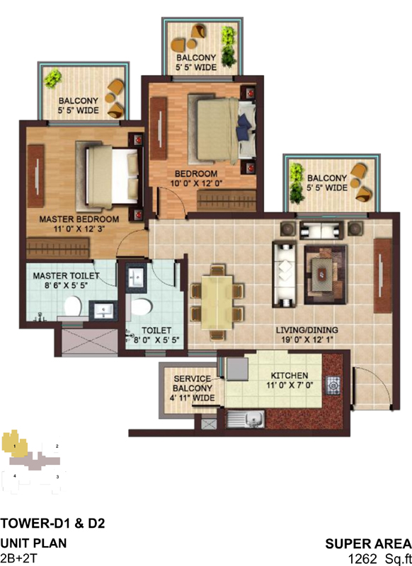 1262 Sq.Ft. Onwards