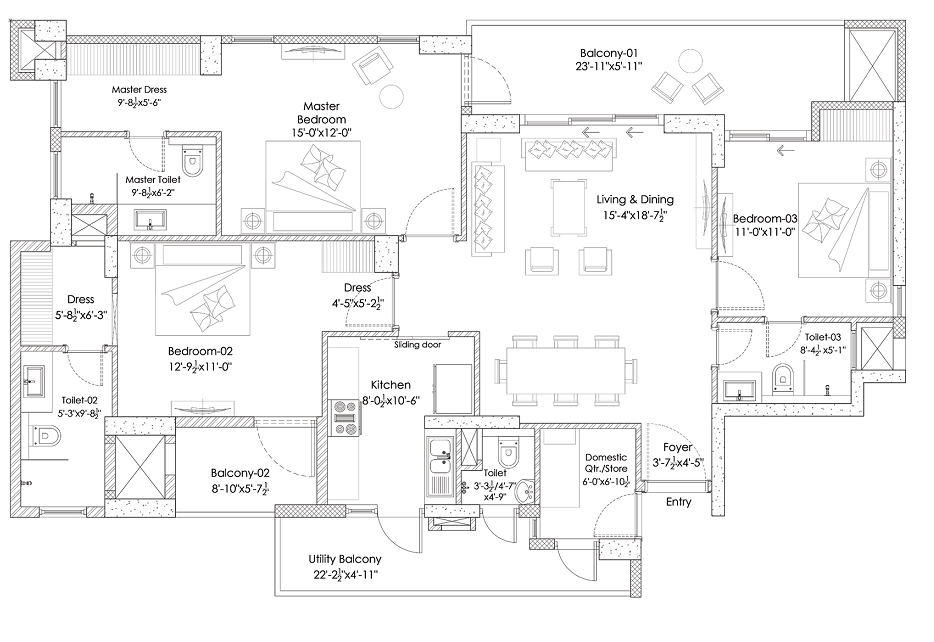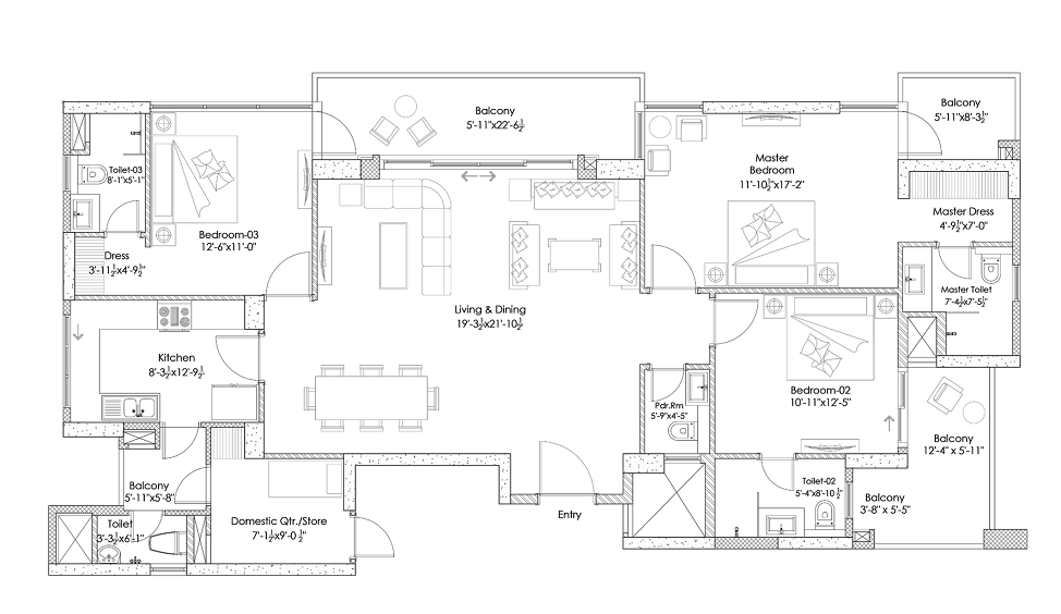 The 3 and 4 BHK apartments are designed to fuse luxury and utility. The premium homes built in the three-tower residency project has 260 plush homes in an area of 5 acres, carefully curated to give every resident a fulfilling life. Hightown Residencies is currently under construction and will be available for possession by March 2025. Here you can find the complete floor plan of Hightown Residences by Silverglades: